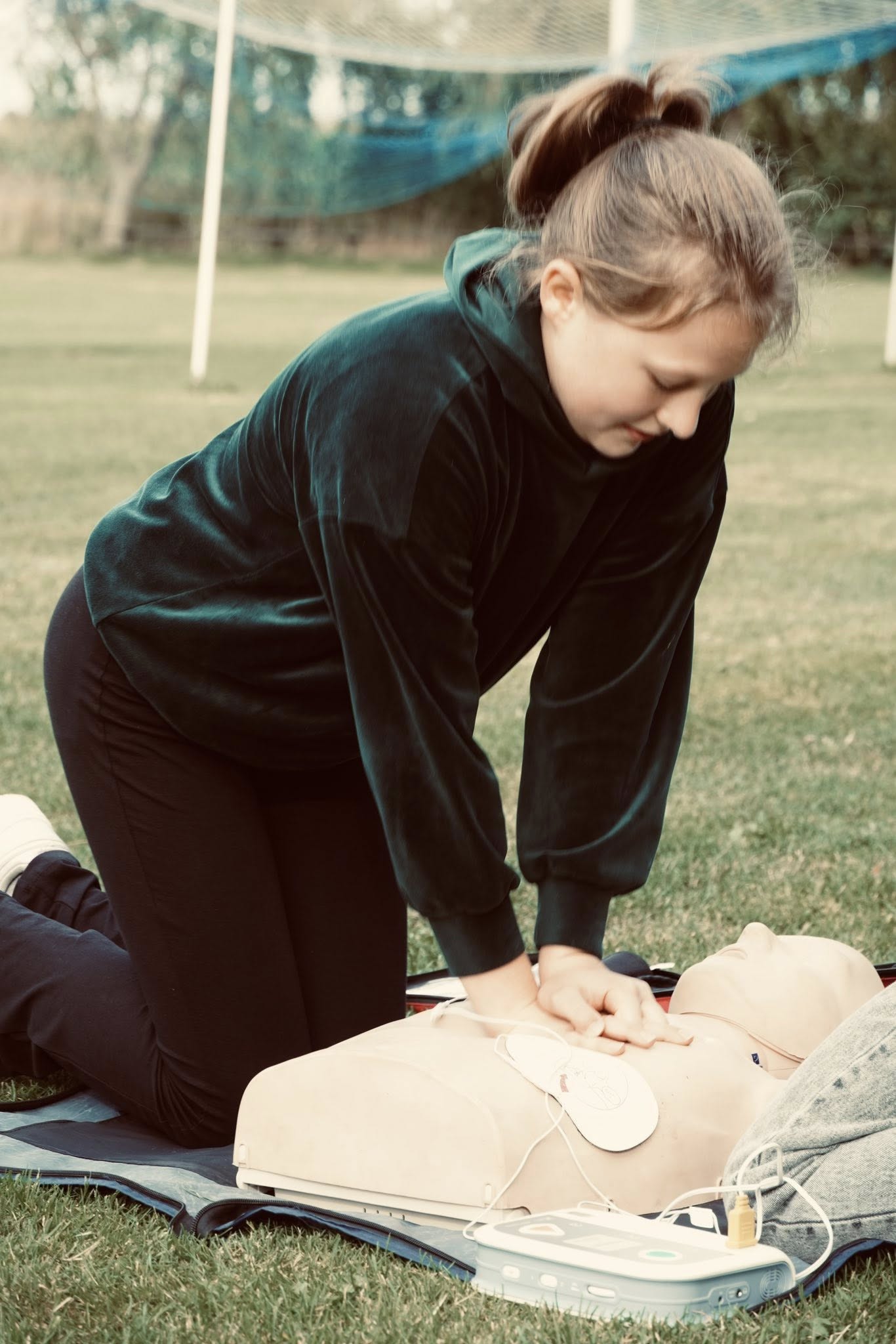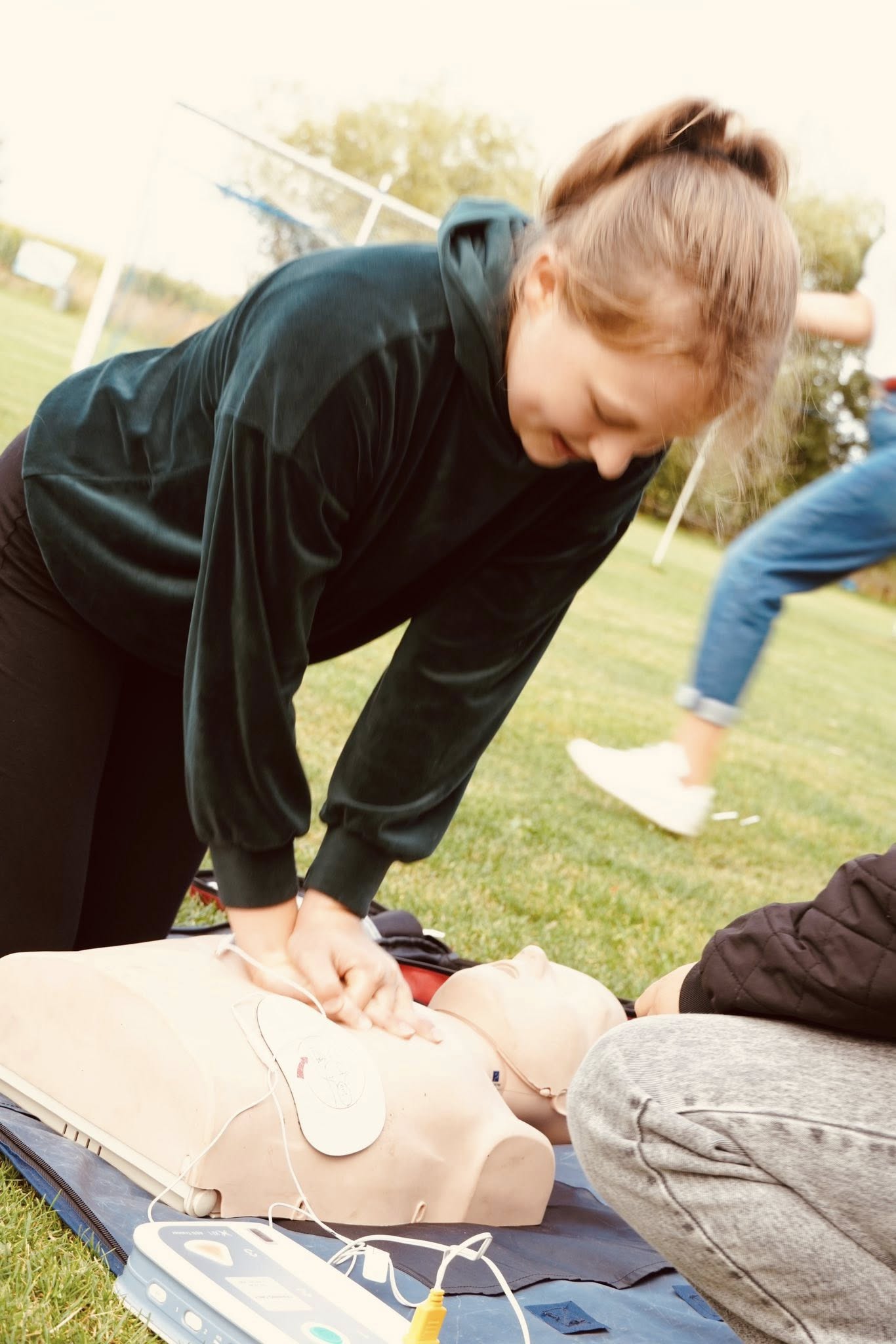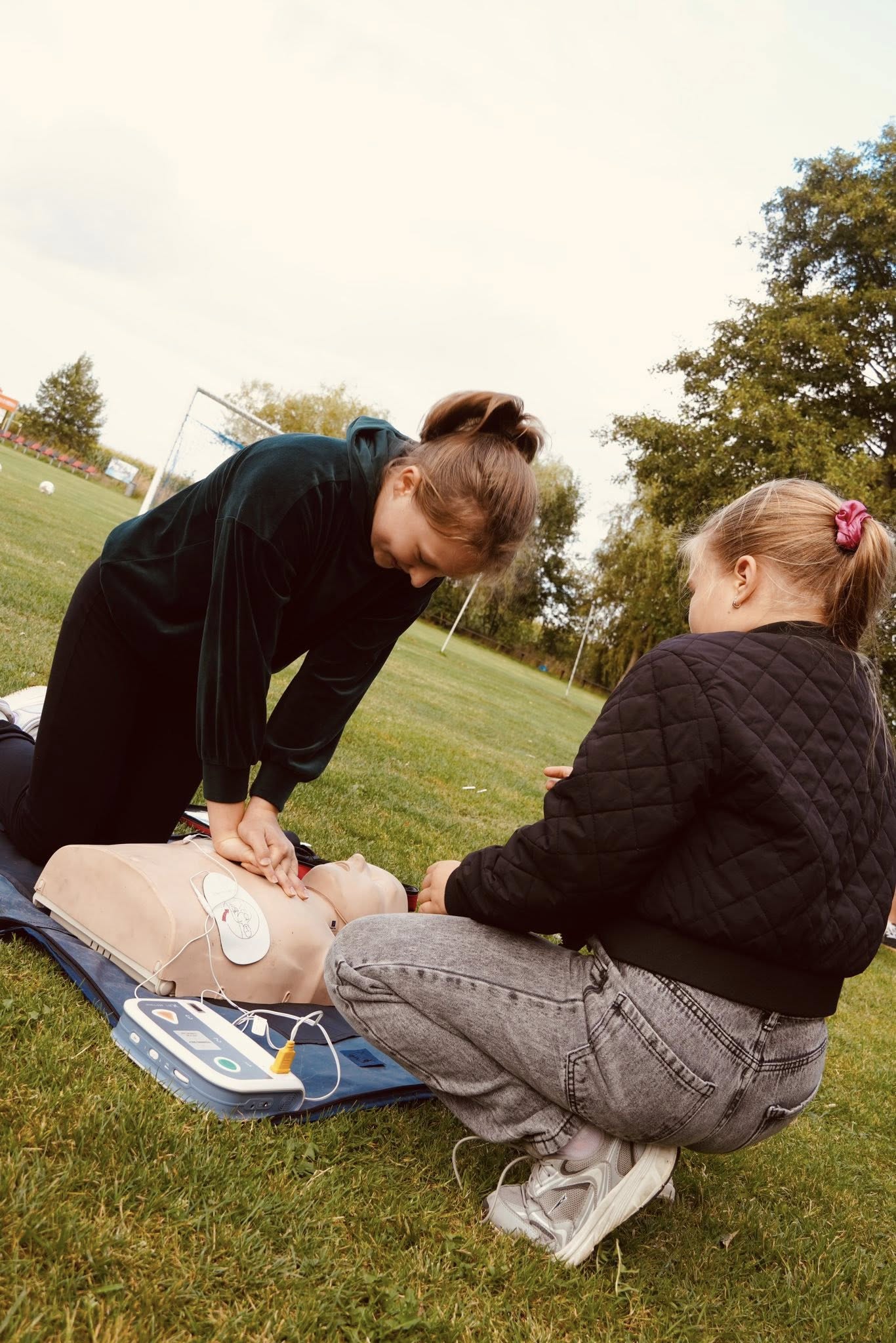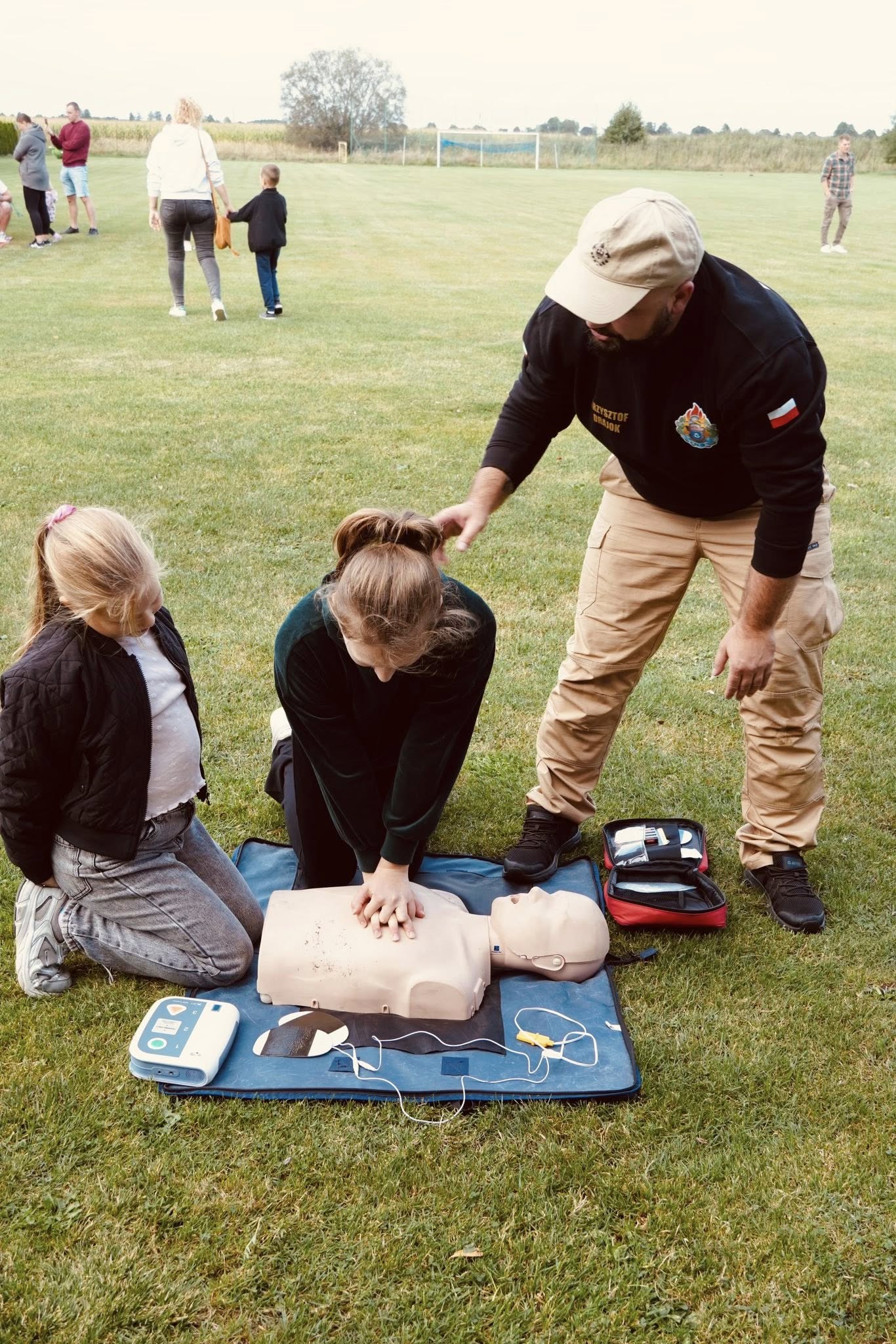 Podczas wspólnej zabawy mieszkańcy mieli okazję uczestniczyć w szkoleniu z obsługi defibrylatora AED, które poprowadził Krzysztof Drajok – koordynator powiatowy 1R. To cenna lekcja, która może uratować życie